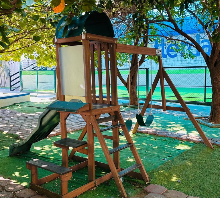 La estimulación física es pilar fundamental en nuestro modelo educativo. En Rotterdam, contamos con infraestructura especializada por etapas: zonas recreativas independientes para Preescolar y Primaria que garantizan un ambiente seguro, divertido y perfectamente adaptado al desarrollo motor de cada estudiante.